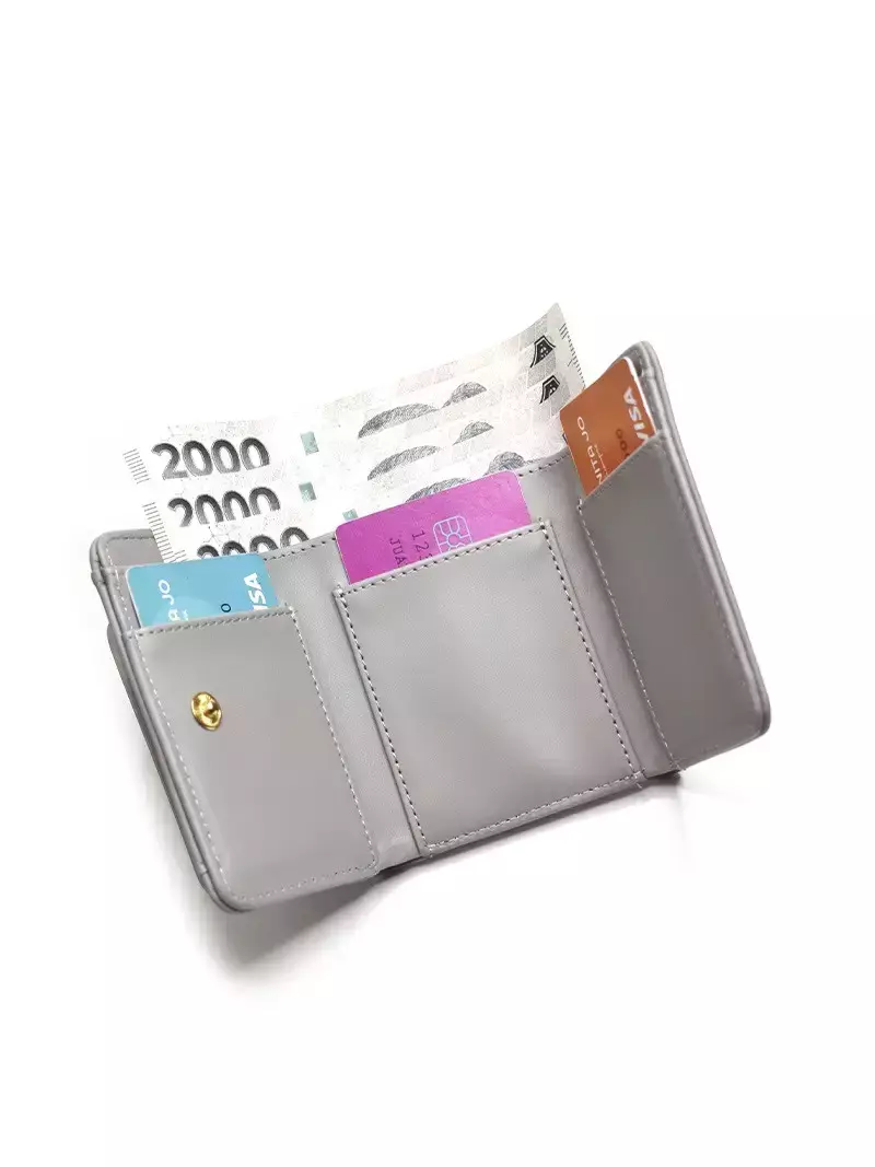 La billetera compacta suma funcionalidad con espacio para tarjetas, billetes y pequeños esenciales.