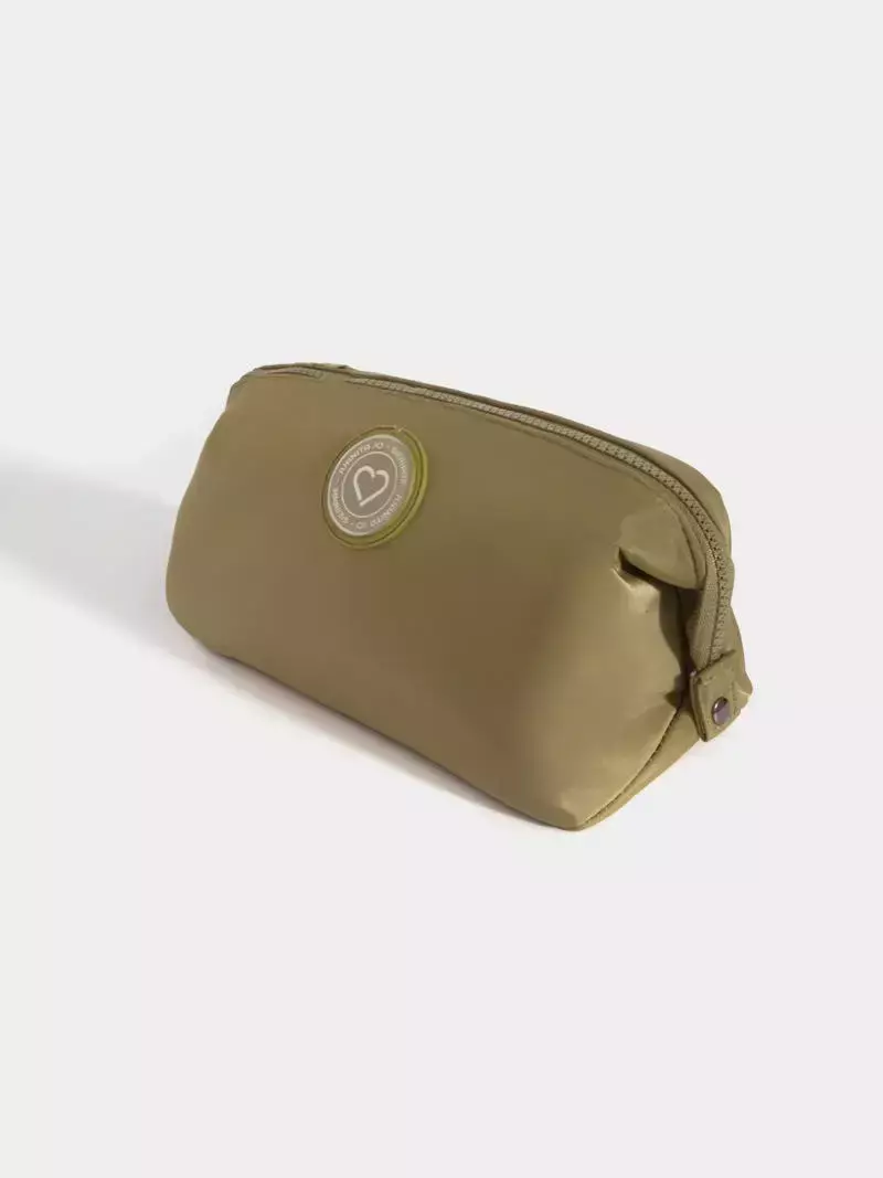 El neceser, confeccionado en novytex impermeable y fácil de limpiar, incluye dos estuches adicionales para organizar todo sin esfuerzo. Su logo tornasol le da un toque único y vibrante. Ideal para valija, bolso de gym o donde vayas.
